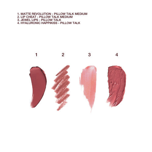 Darlings, shop my Pillow Talk Lip Wardrobe to create a dreamy Pillow Talk pout in your favourite finish!