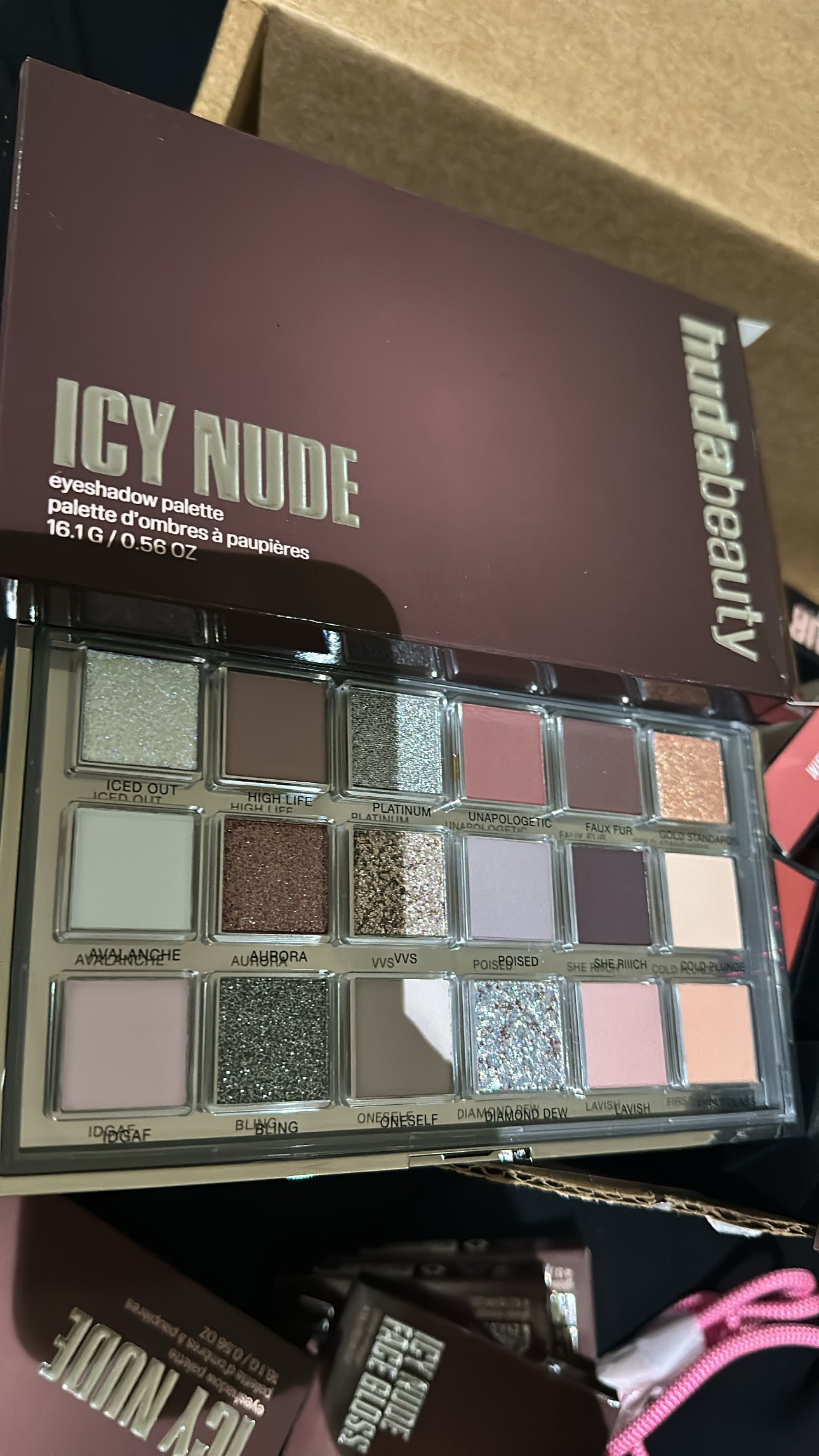 Break the rules by combining frosty silvers with cool burgundies with Huda Beauty's Icy Nude Eyeshadow Palette.