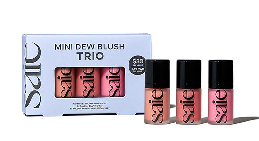 he Saie Mini Dew Blush Trio is the perfect way to achieve a natural, healthy-looking flush effortlessly. The trio includes three mini sizes of Saie's ultra-blendable, cream-gel blush in best-selling shades for a flawless finish.