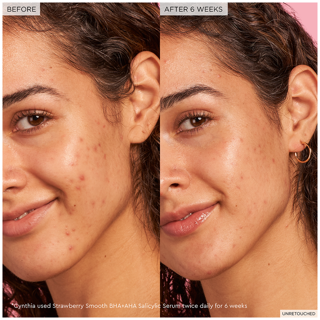 Powered by our 10% Clarity Acid Complex™–a special blend of 2% salicylic acid & mandelic acid (AHA+BHA), strawberry, azelaic acid, and succinic acid–this serum gently smooths texture, clears breakouts, and refines pores, while calming skin. These clarifying qualities are balanced with hydrating & soothing ingredients like hyaluronic acid & allantoin to add moisture and protect your skin for a soft-glow finish. It’s time to ditch over drying acid treatments & get Strawberry smooth!